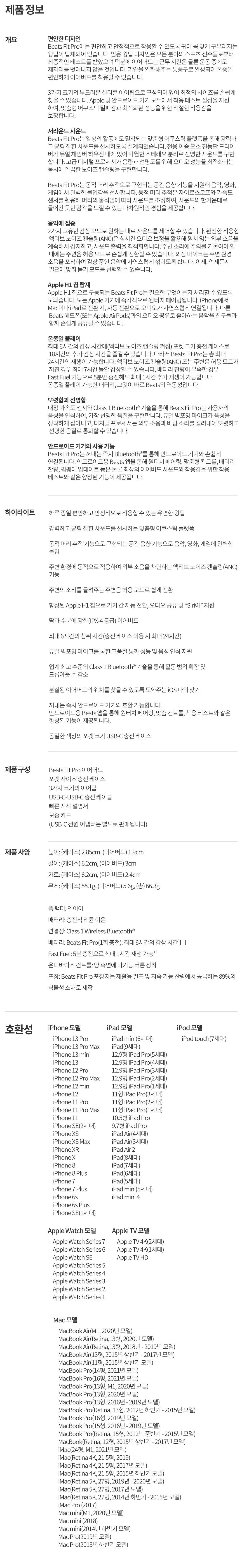 | 품명 및 모델명 | Apple Beats Fit Pro 진정한 무선 이어버드 — Beats 화이트 (MK2G3ZP/A) | KC 인증정보 | 추후 등록 예정 |