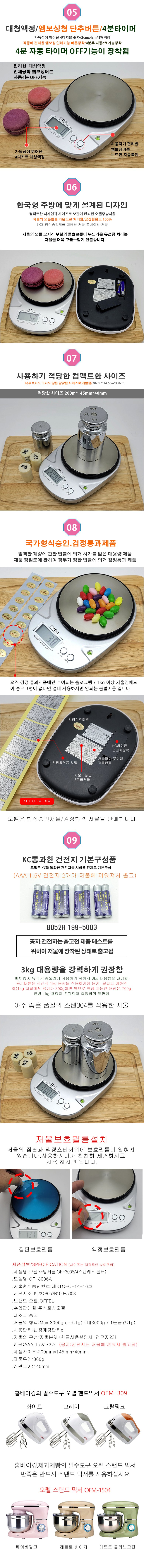 | 품명 및 모델명 | 오펠 대용량 스텐304 주방저울/OF-3006A | KC 인증정보 | 형식승인번호: 제 KTC-C-14-16 , 건전지: B052R199-5003 |
