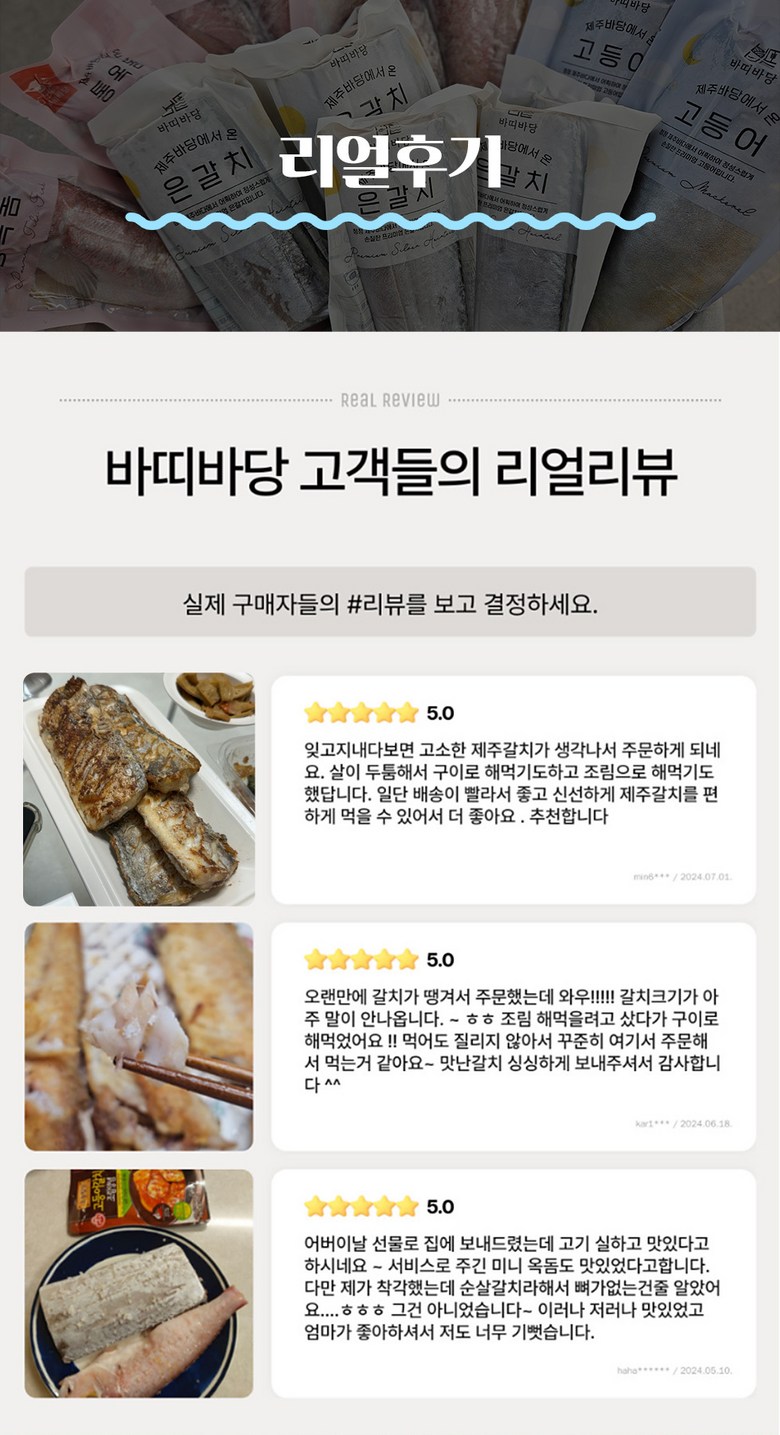 손질된 갈치는 해동 후 바로 조리가 가능하며, 구이용, 조림용, 탕용 등 다양한 조리법에 활용할 수 있습니다. 제주 은갈치는 살이 부드럽고 기름기가 적당하여 남녀노소 누구나 먹기 좋은 생선으로, 가정용 반찬은 물론 선물용 수산물로도 활용도가 높습니다.
