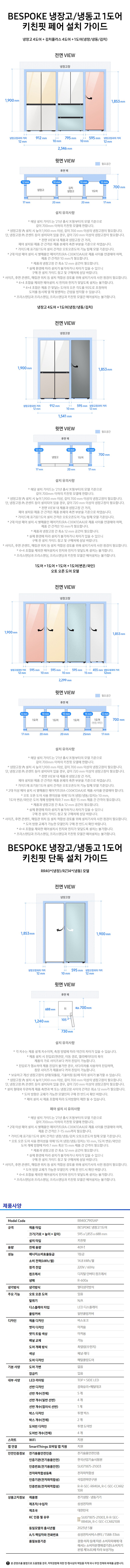 | 품명 및 모델명 | 전기냉장·냉동기기 / RR40C7905AP, RQ34C7915AP | KC 인증정보 | 본품 : SU071875-21003E, R-R-SEC-RR40A / 무선기기 : R-C-SEC-CCAR210R |