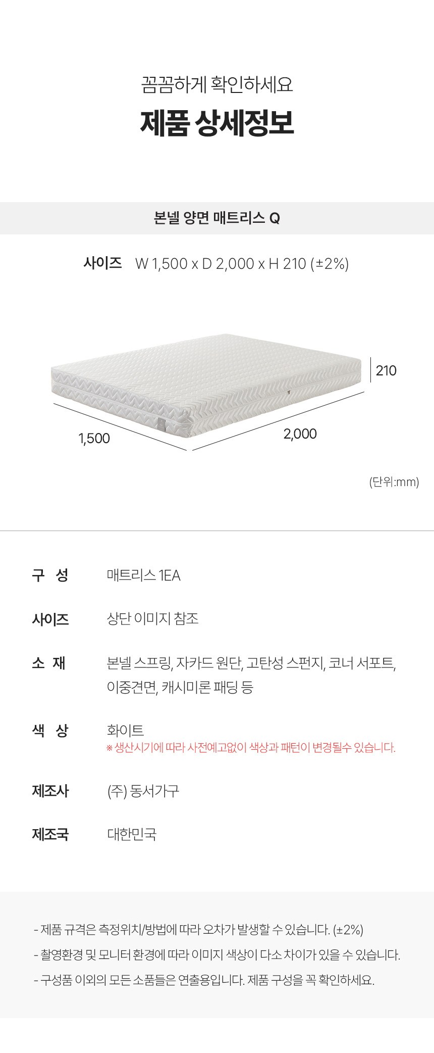 | 주요 소재 | 컨텐츠 참조 | 제조자(수입자) | 본품 : (주)동서가구ㅣ매트리스 : (주)동서가구 |