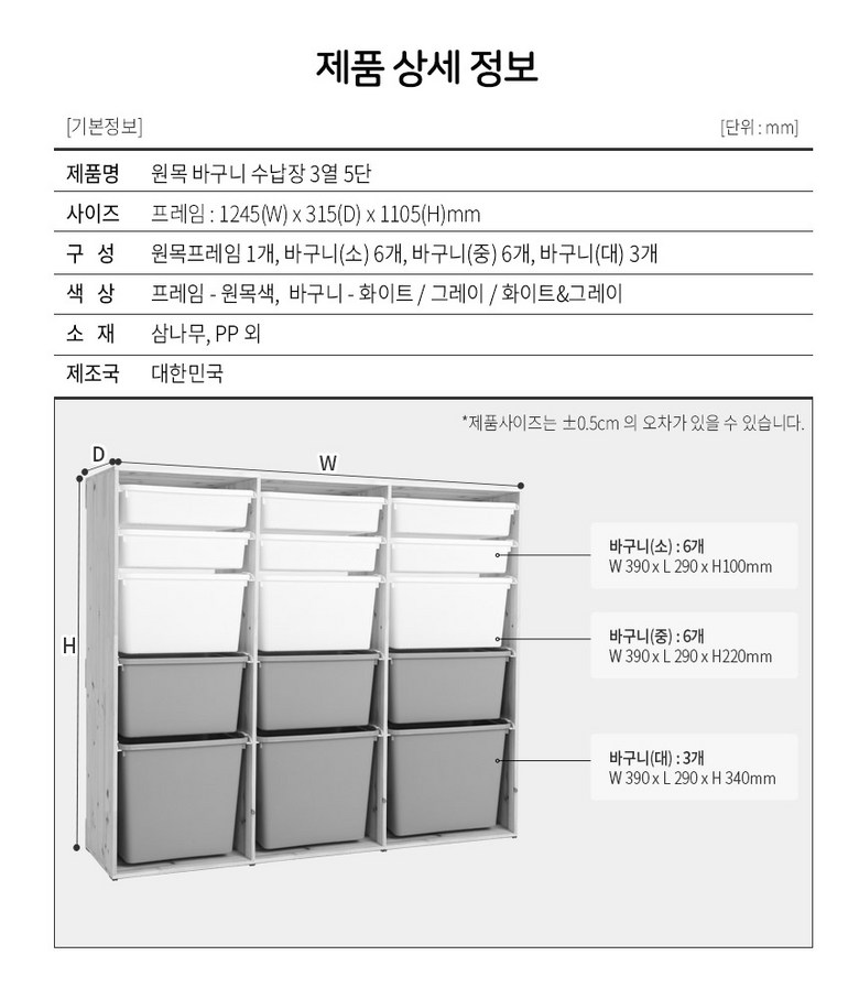 | 품명 | 원목 바구니 수납장 3열 5단 | KC 인증정보 | 해당사항없음 |