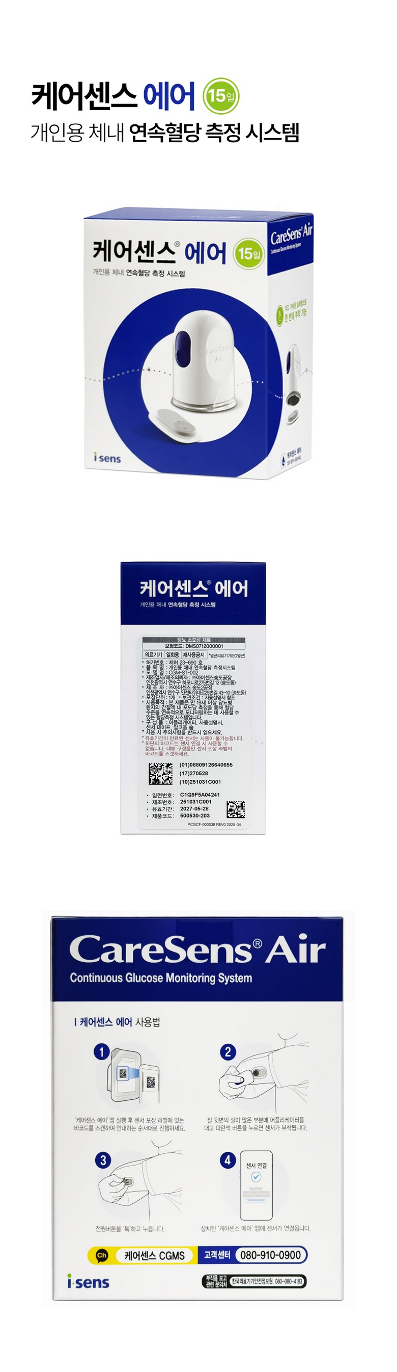 | 품명 및 모델명 | 케어센스 에어 연속혈당측정기 CGM-ST-002 | 인증/허가 사항 | 상품 상세페이지 참조 |