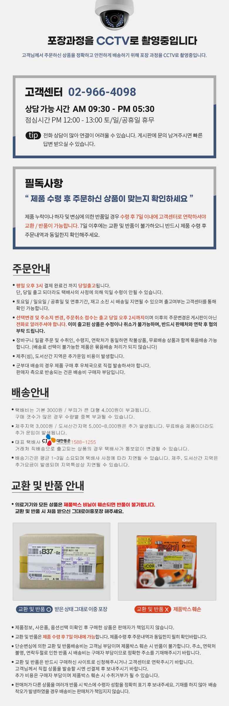 - ㆍ교환/반품에 관한 일반적인 사항은 판매자가 제시사항보다 관계법령이 우선합니다.
