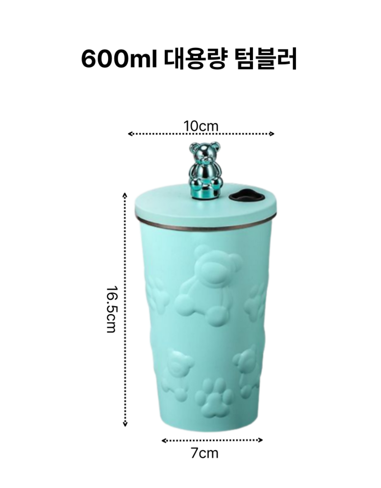 오주 곰 빨대 텀블러 빨대 뚜껑이 있는 귀여운 곰 빨대 텀블러