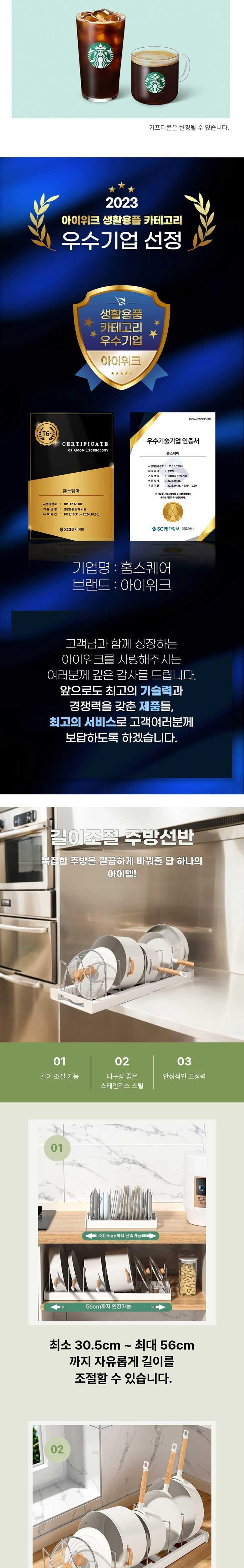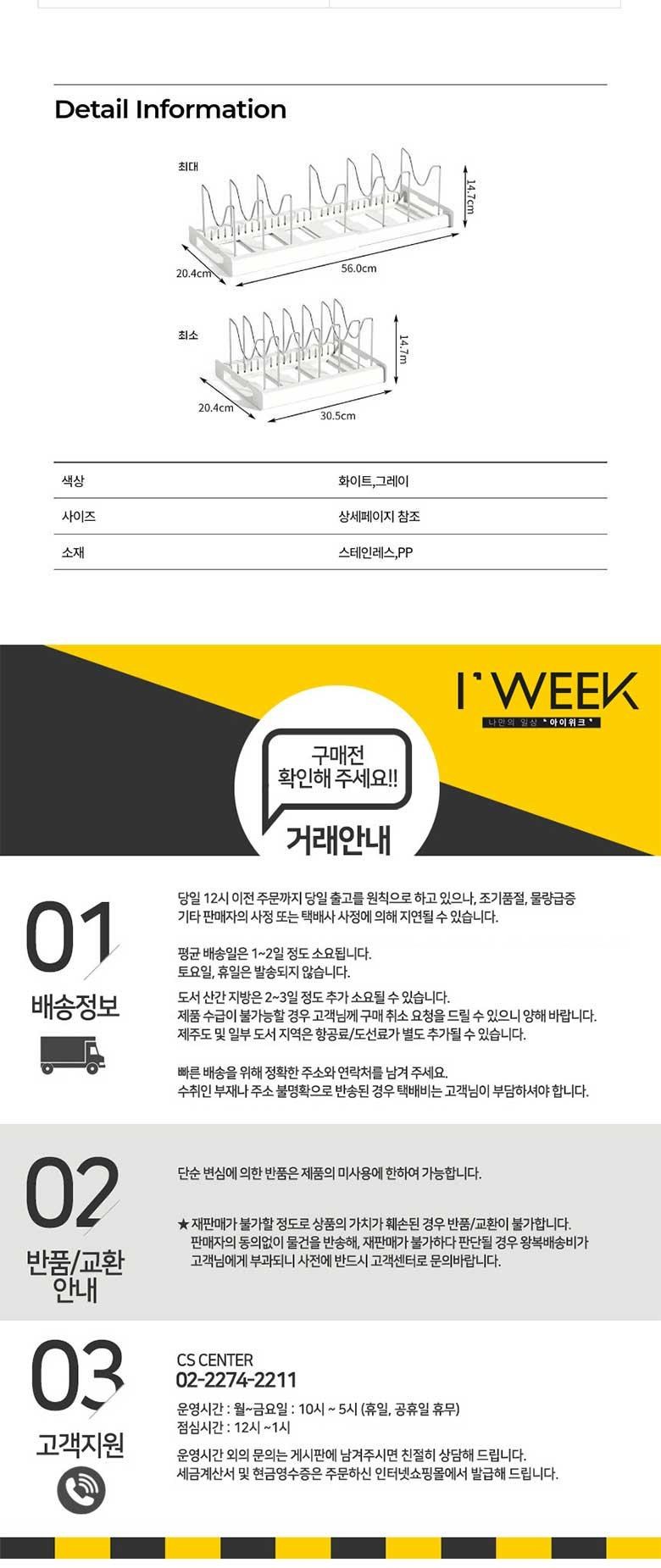 | 품명 및 모델명 | 아이위크 길이조절 냄비 정리대 후라이팬 거치대 접시 선반 | 인증/허가 사항 | 상품 상세페이지 참조 |
