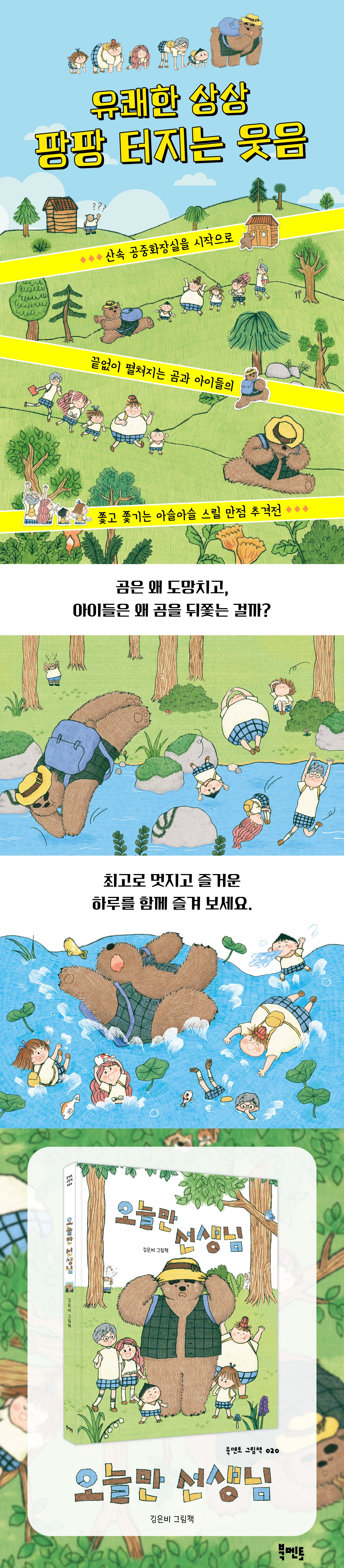 《오늘만선생님》은 책 제목 그대로 딱 하루 얼떨결에 선생님되어 버린 척척곰 이야기예요. 산에 사람들이 없을 때,