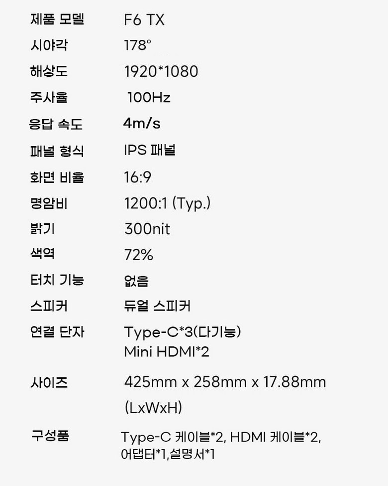 샤오미 BSCONN 듀얼 스크린 접이식 휴대용 모니터 42.5cm F6 TX