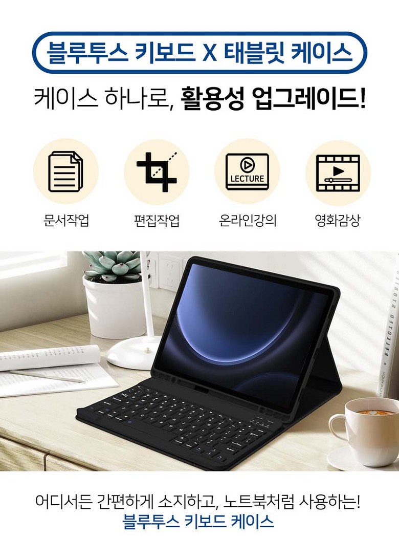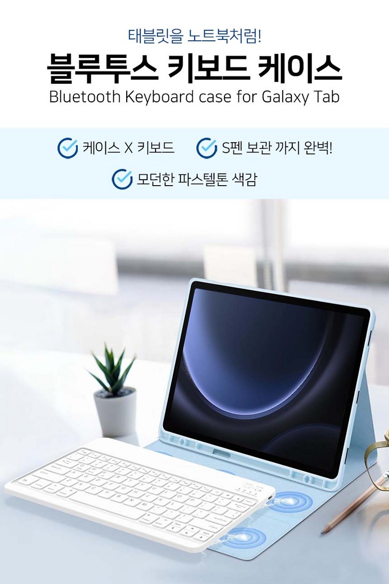 삼성 갤럭시탭 S9 FE+ 12.4인치 호환 블루투스 키보드 케이스 북커버 플러스 S펜수납 SM-X610N X615N X616N 케이스나라