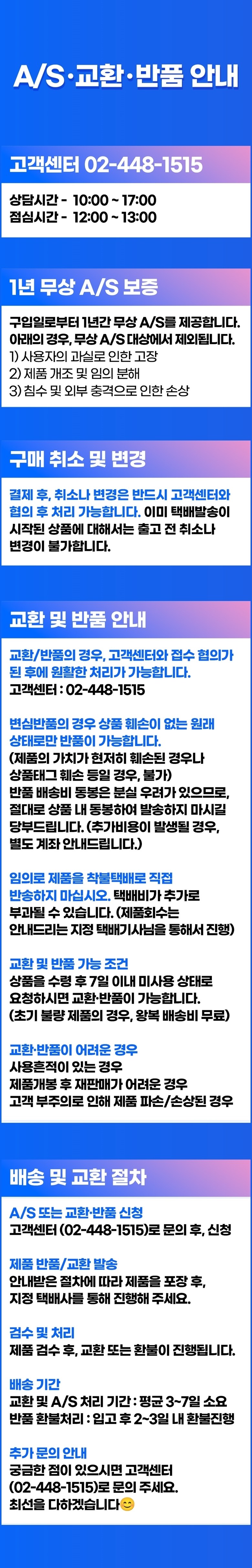 - ㆍ교환/반품에 관한 일반적인 사항은 판매자가 제시사항보다 관계법령이 우선합니다.