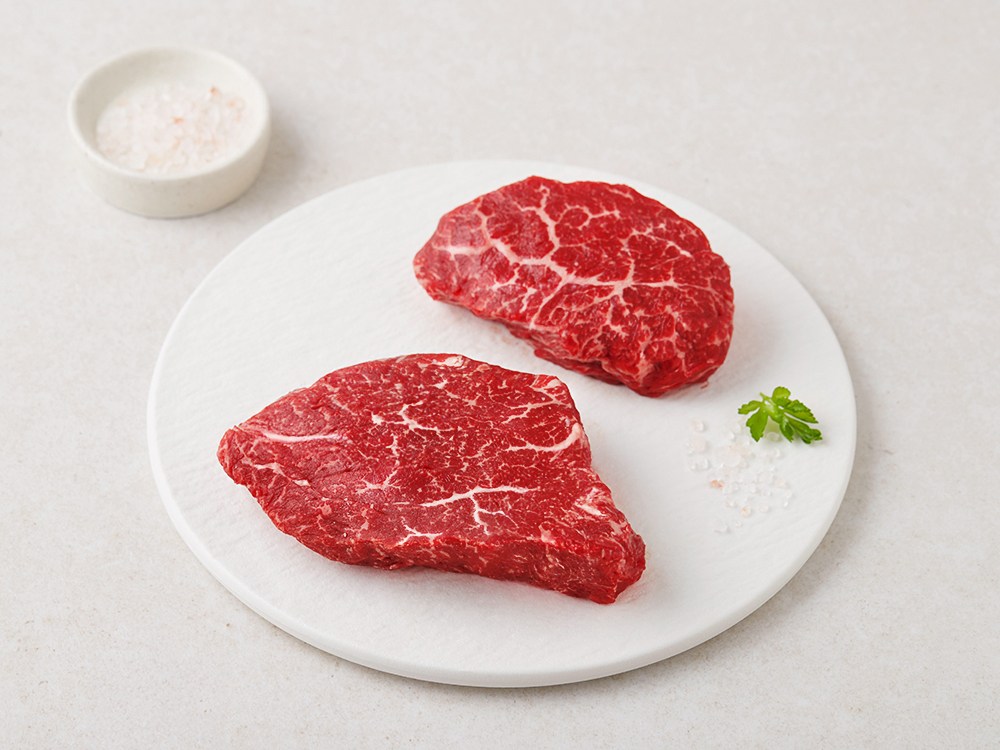 소의 복강 안쪽에 위치해 운동량이 매우 적은 안심. 그만큼 고깃결이 곱고 지방이 적어 부드럽게 씹히는 부위인데요. 노릇하게 구웠을 때 진가를 발휘하는 안심을, 신선한 1+등급 한우로 즐겨보세요. 굽기 좋은 두께로 정형되어있어 곧장 노릇노릇하게 조리할 수 있답니다. 한입 먹으면 담백한 육즙이 입안 가득 촉촉하게 퍼질 거예요. 구운 채소를 가니쉬로 곁들여 풍성하게 즐기셔도 좋아요.