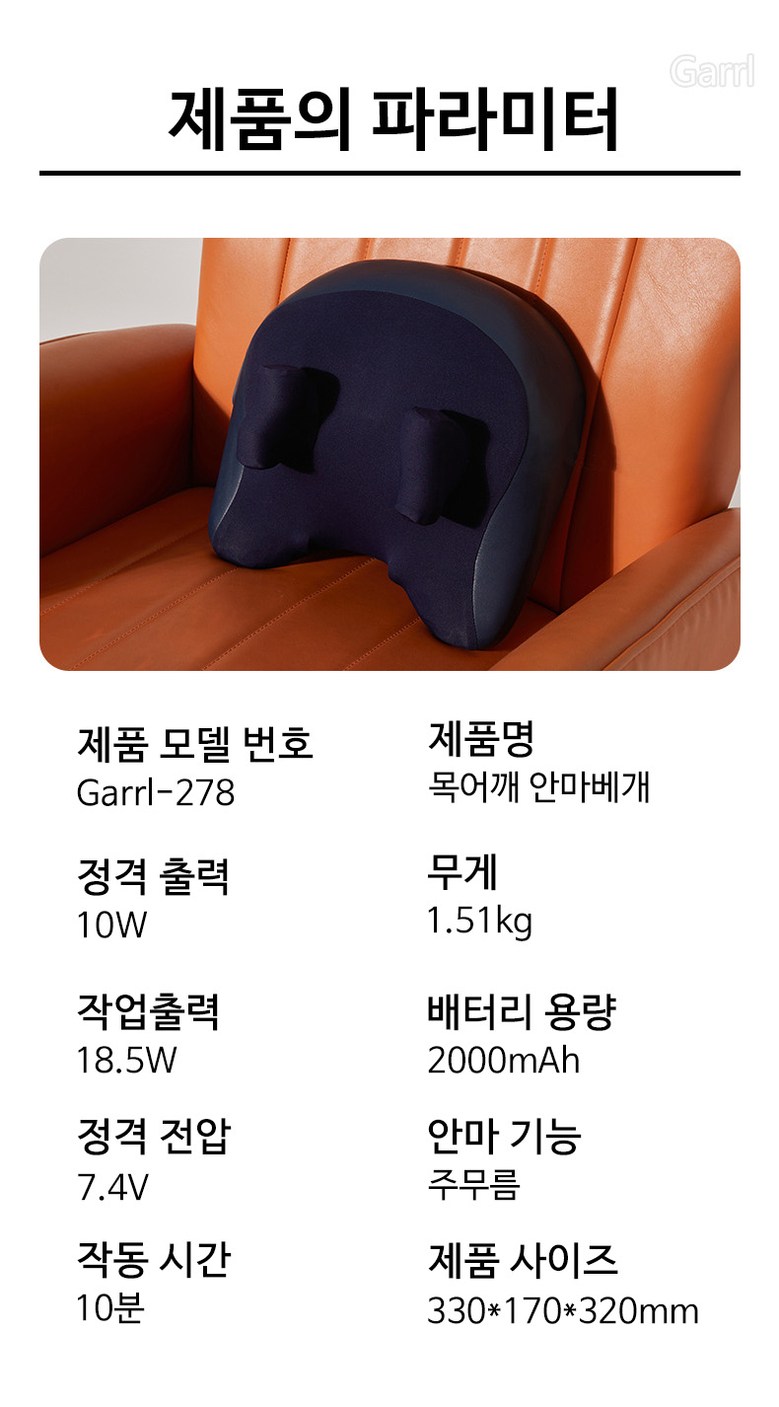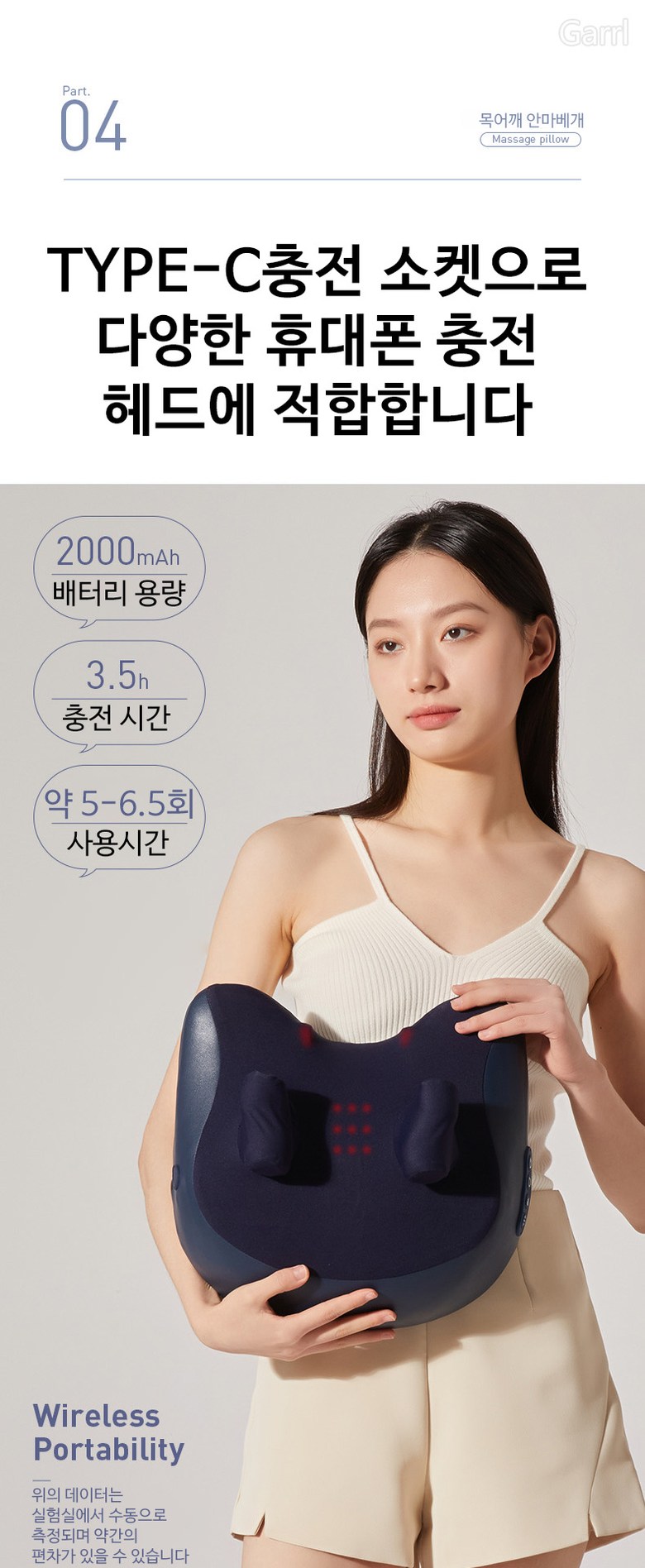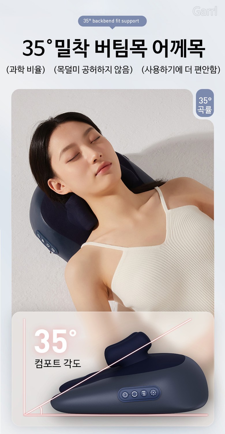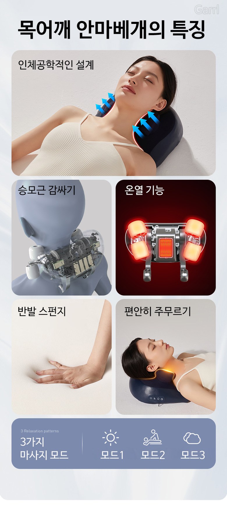 Garrl 목어깨 안마베개 온열 목마사지기 3단계 강도 조절 다용도 무선