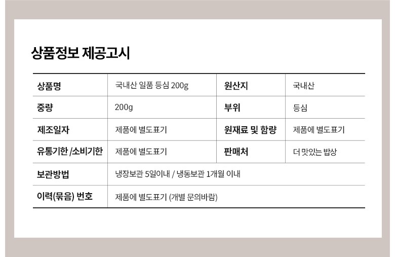 | 생산자(수입자) | 진해(더밥) | 원산지 | 국내산 꽃등심 |