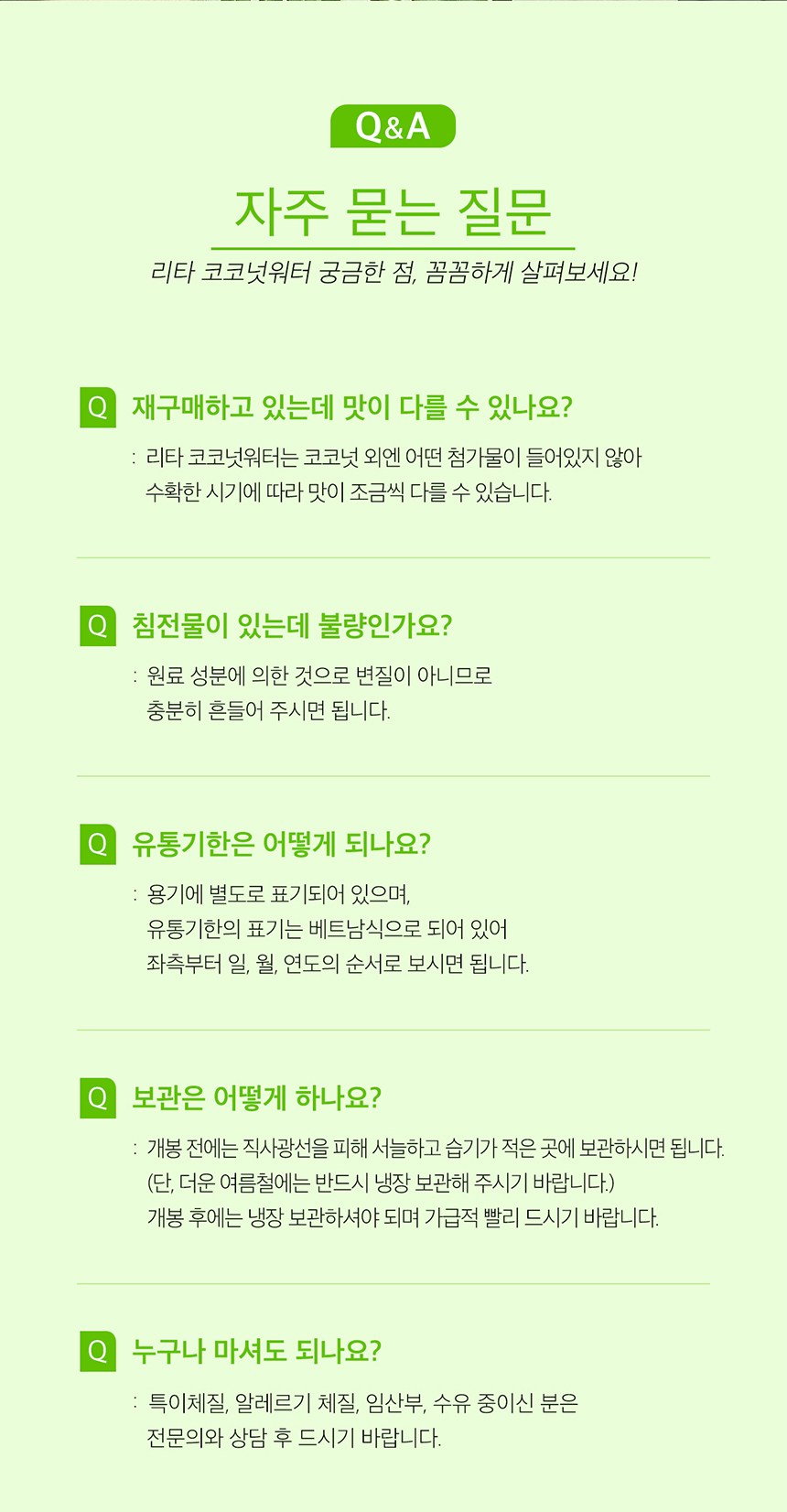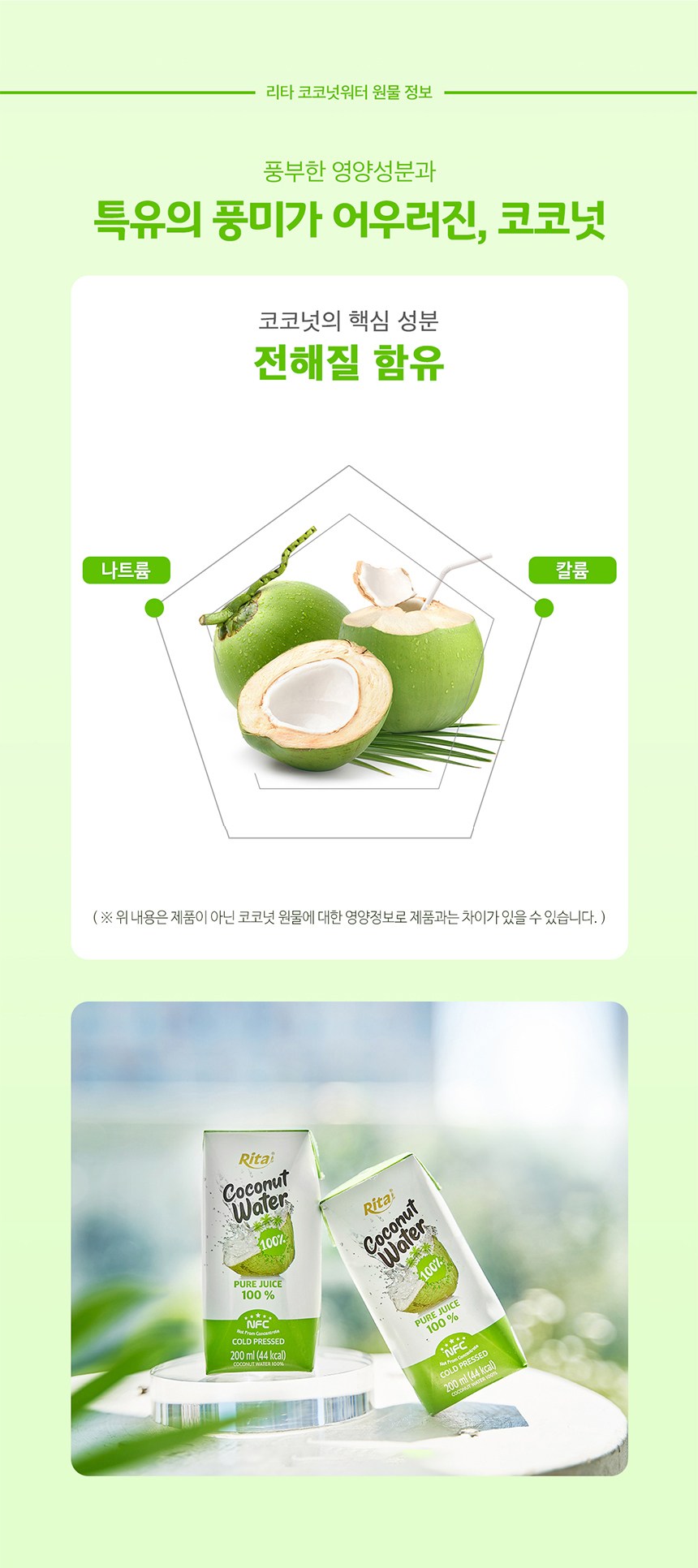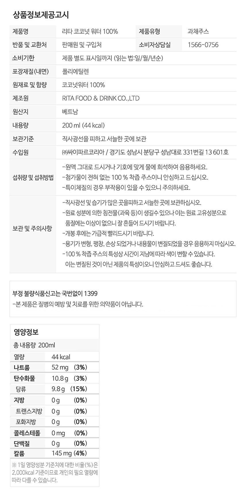 | 제품명 | 리타 코코넛 워터 100% | 식품의 유형 | 과채주스 |