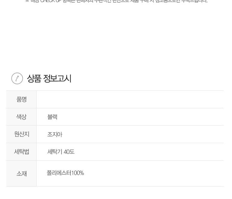 | 제조국 | 상품 상세페이지 참조 | 세탁방법 및 취급시 주의사항 | 상품 상세페이지 참조 |