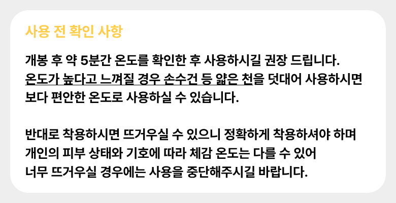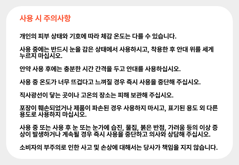 | 품명 및 모델명 | 워나던 온열 안대 스팀 아이마스크 | 인증/허가 사항 | 해당없음 |