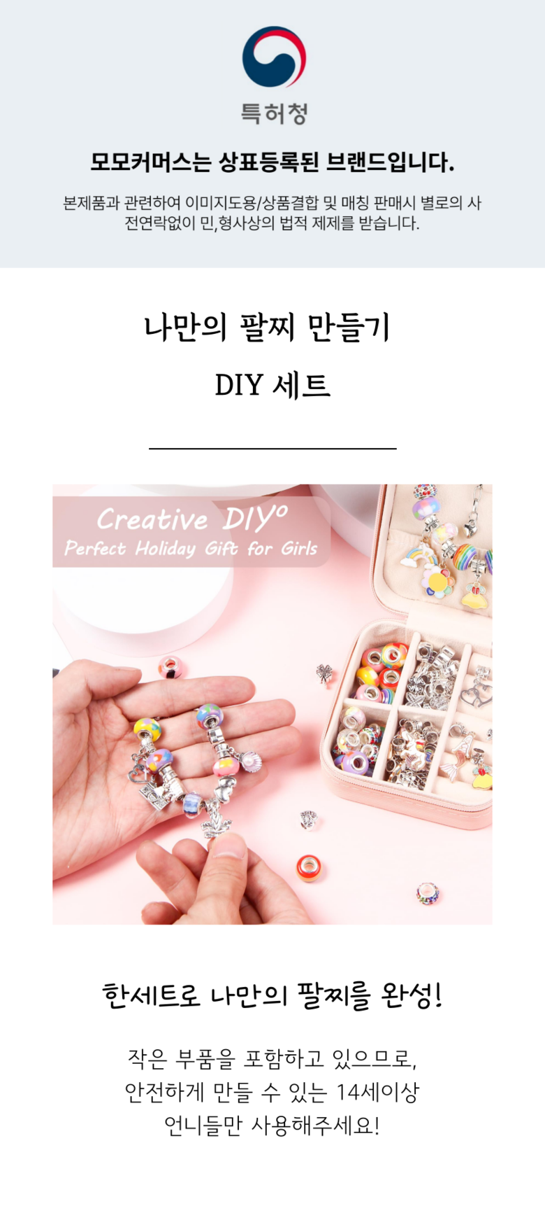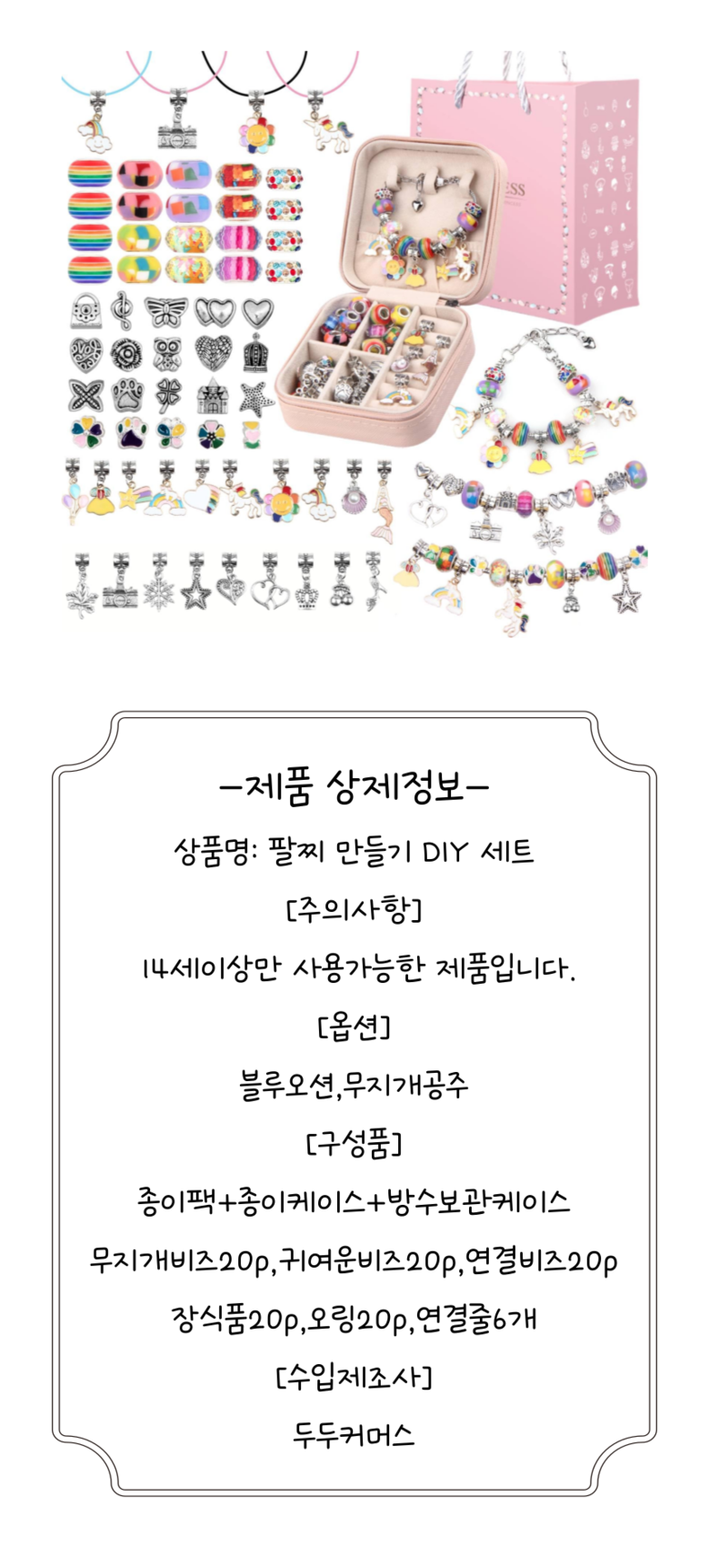 | 품명 및 모델명 | [나만의 팔찌 한세트로 완성] 비즈 구슬 팔찌 목걸이 만들기 DIY 세트 | 인증/허가 사항 | 인증대상 아님 |