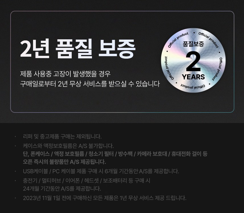 - ㆍ제조사의 사정 (신모델 출시 등) 및 부품 가격 변동 등에 의해 무료 교환/반품으로 요청하는 경우