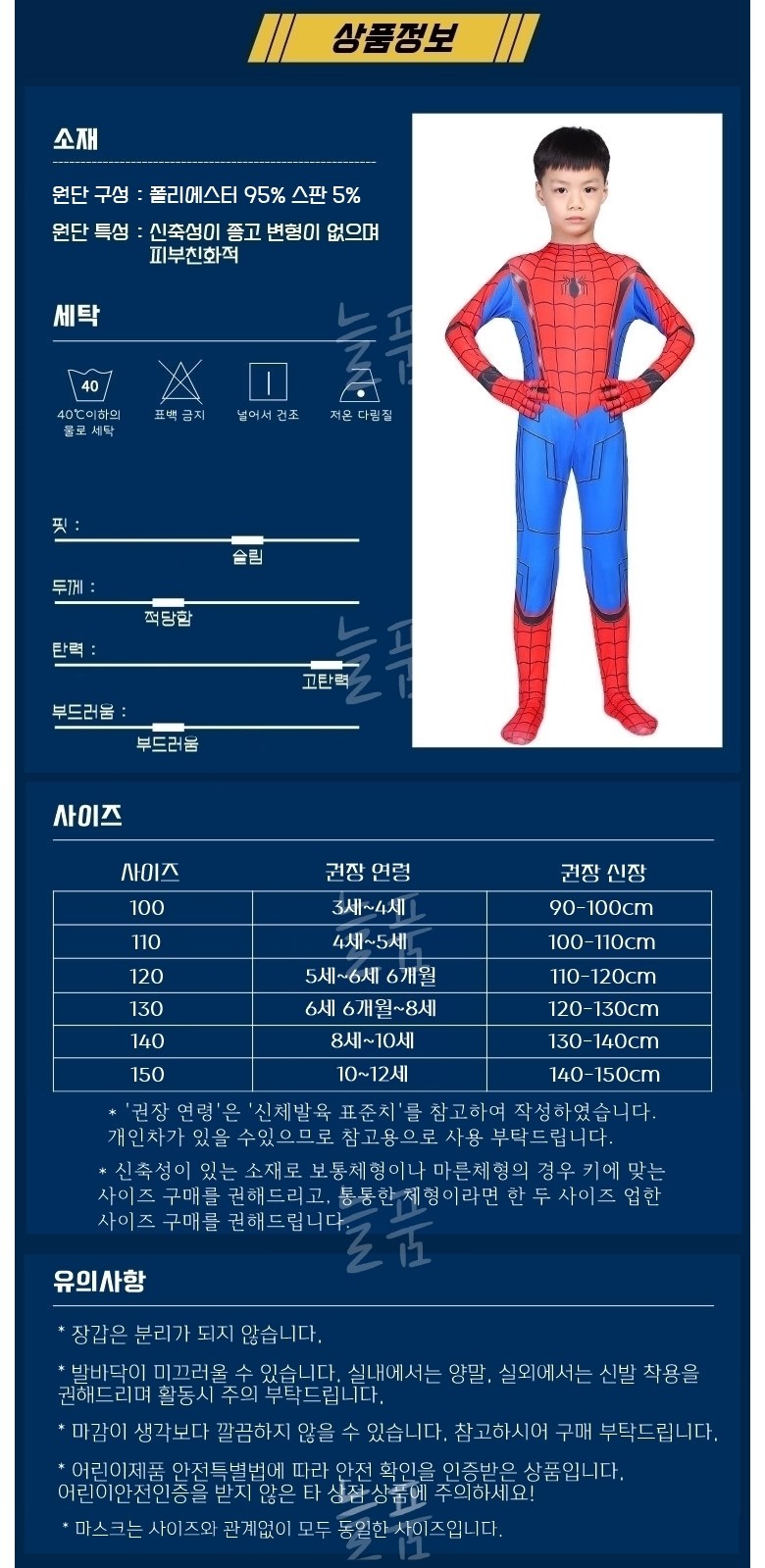 | 품명 및 모델명 | 아동용 섬유 및 스파이더맨 점프슈트 | KC 인증정보 | CB065R1559-1001 |