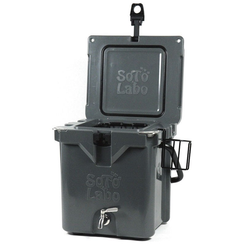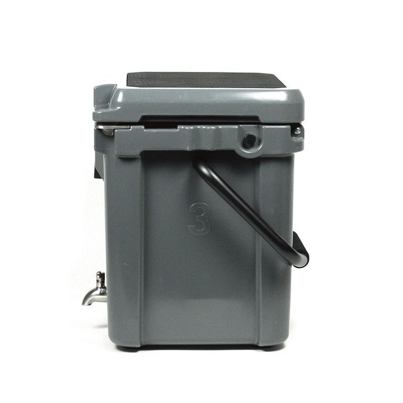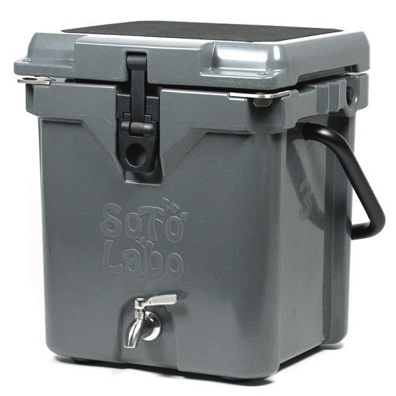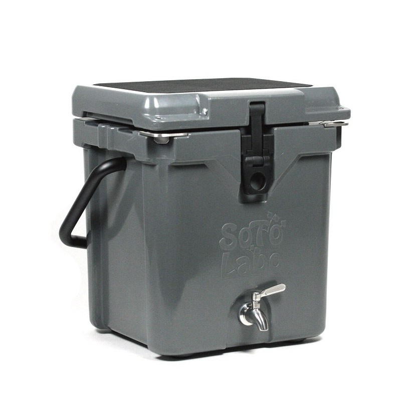 쿨러 기능을 탑재한 워터 저그입니다. 스테인리스 수도꼭지를 비틀면 물이 계속 나오기 때문에 양손을 사용할 수 있어 활용하기 좋습니다. 스,퀘어형으로 임시로 스툴로 쓰기에도 좋습니다.