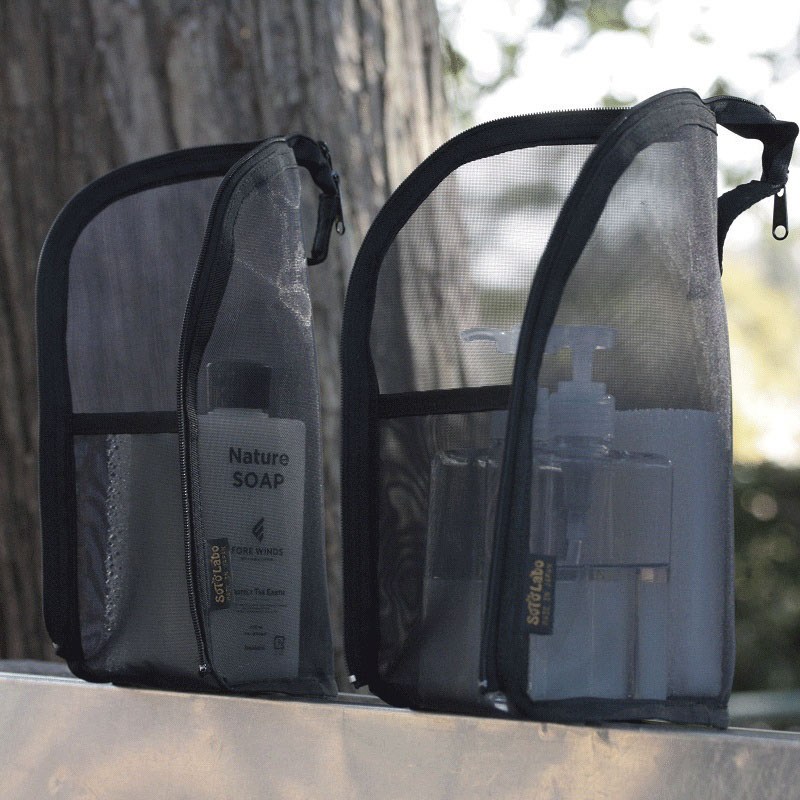 벌레나 먼지의 침입을 막고, 물이 고이지 않기 때문에 젖은 상태로 매달아 두면 잘 건조되는 메쉬 케이스입니다. 더블 지퍼로, 위쪽에서도 열 수 있습니다. 목욕용품 등을 넣어도 좋습니다.