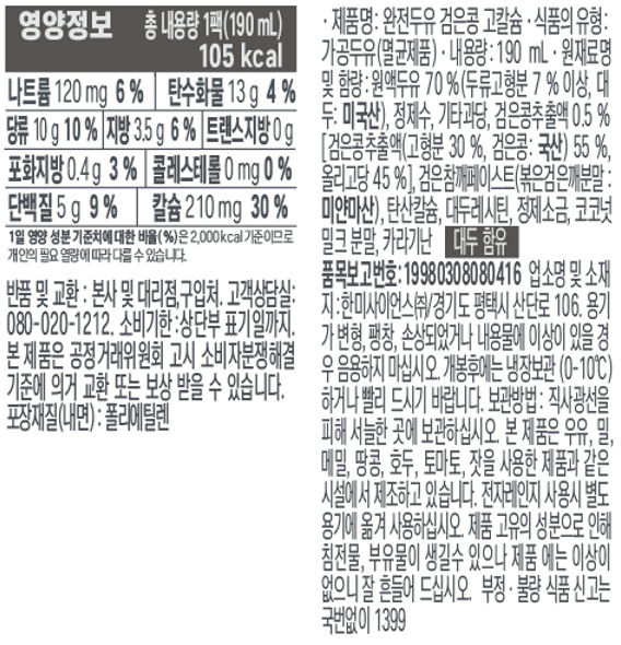| 포장단위별 내용물의 용량(중량), 수량 | 190ml x 20개 | 원재료명 및 함량 | 컨텐츠 참조 |