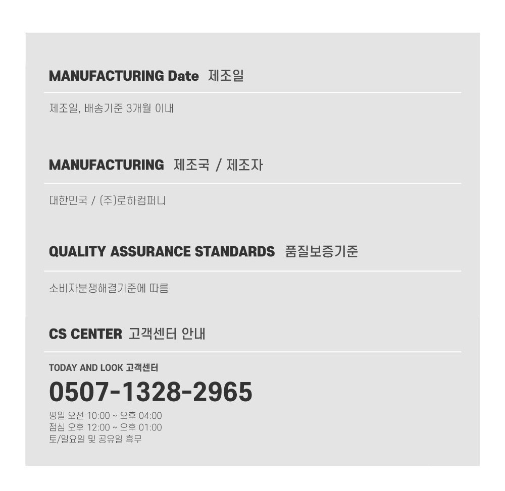 | 치수 | 컨텐츠 참조 | 제조자(수입자) | (주)로하컴퍼니 |