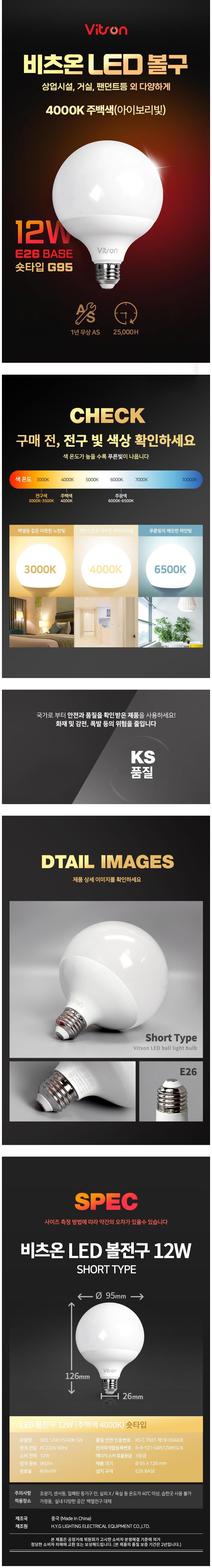 | 품명 및 모델명 | 컨버터 내장형 LED 램프 / G95 12W KS/40K-SN | KC 인증정보 | KS C 7651 제18-0048호, R-R-YZ1-G9512WKSLN |
