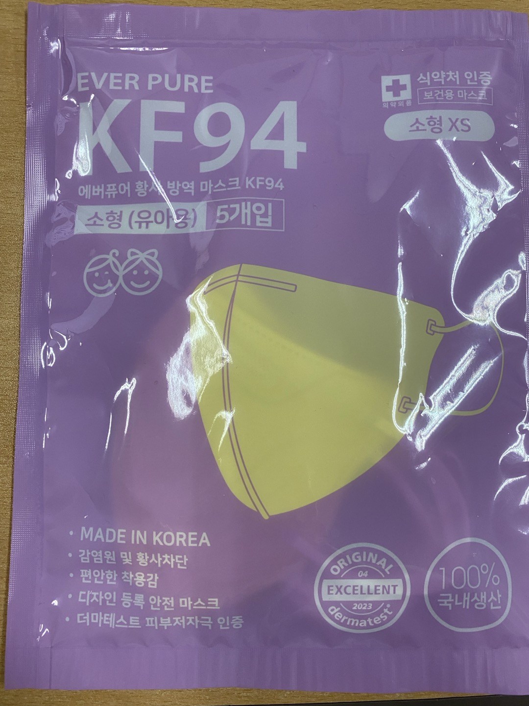 | 품명 및 모델명 | 에버퓨어황사방역마스크(KF94)(소형)(연한황색) | 인증/허가 사항 | 의약외품 |
