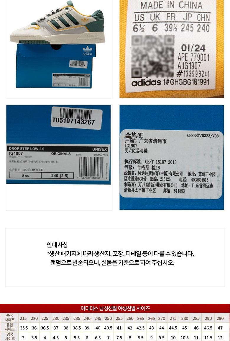 아디다스 남녀공용 드롭 스텝 로우 2.0 캐주얼 경량 운동화 IG1907