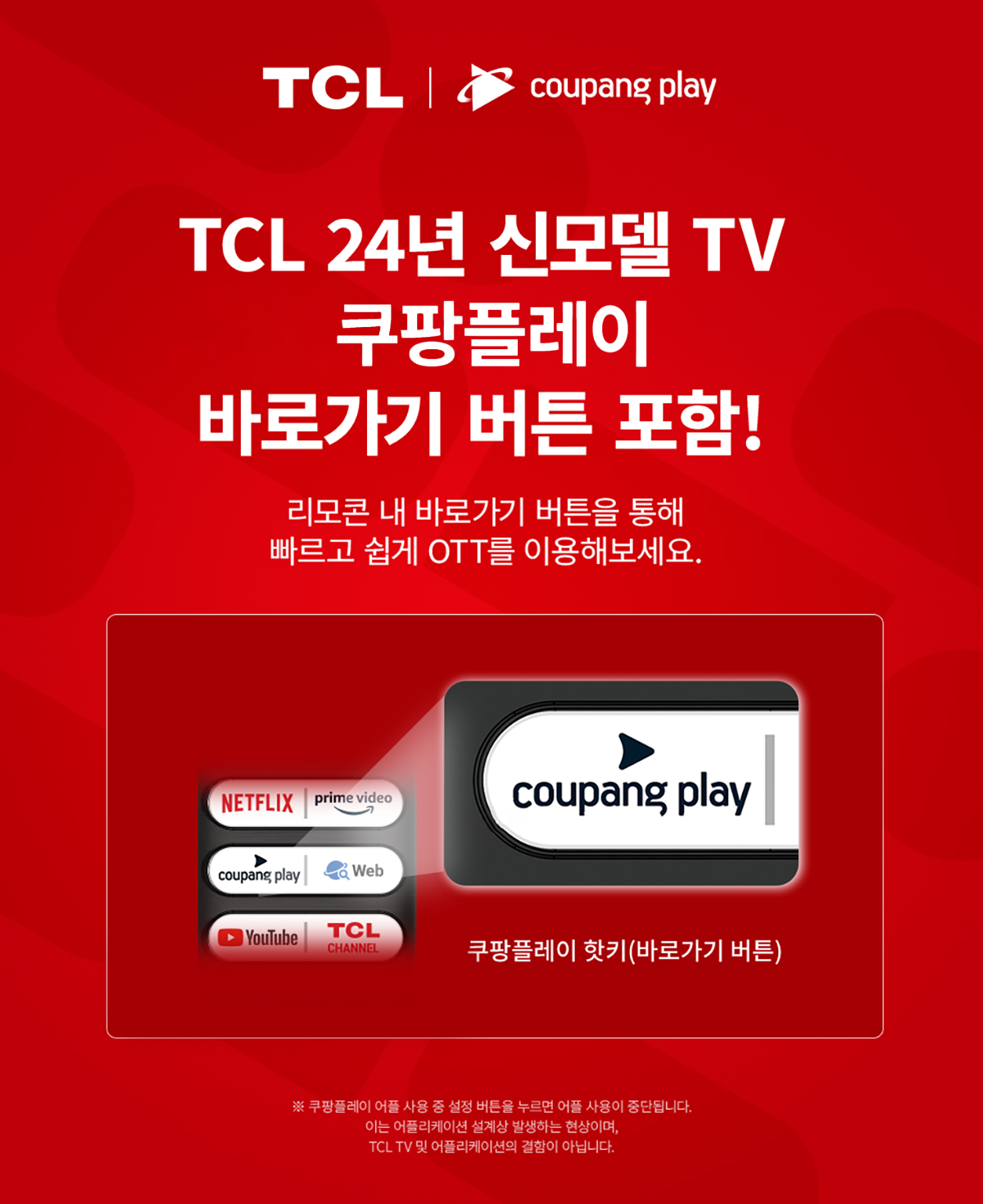 | 출시년월 | 업체미제공 | 제조자(수입자) | 본품: TCL King Electrical Appliances (Huizhou) Co., Ltd. / 쿠팡주식회사, 브라켓: HYB인터내셔널/업체미제공 |