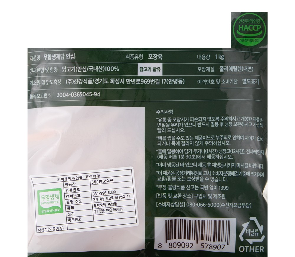 무항생제 인증 닭 안심