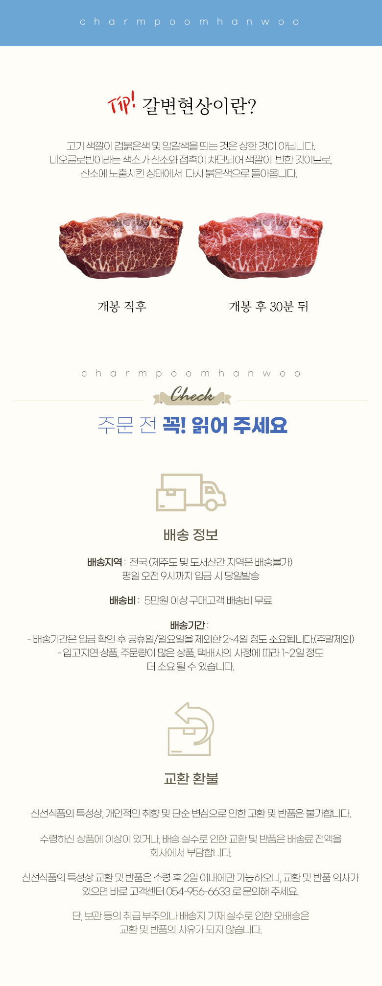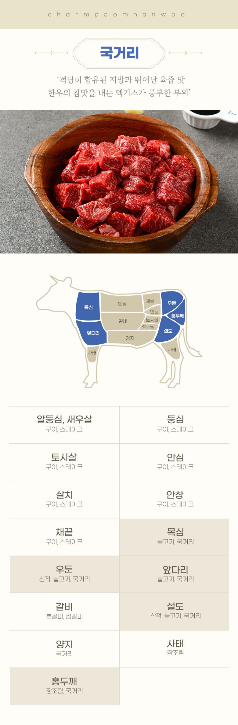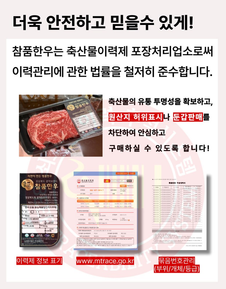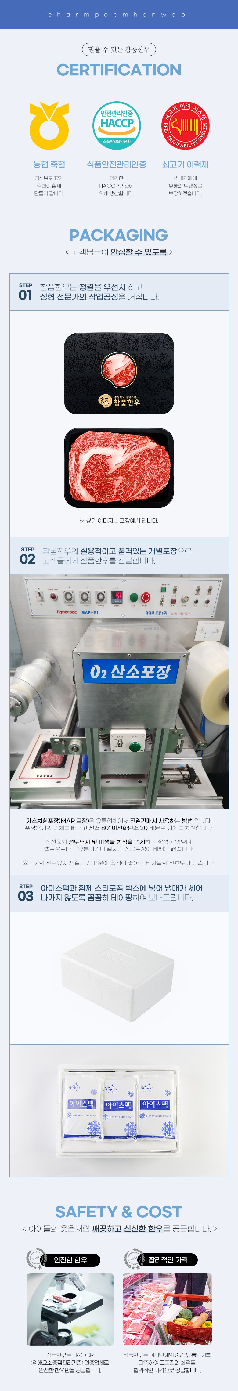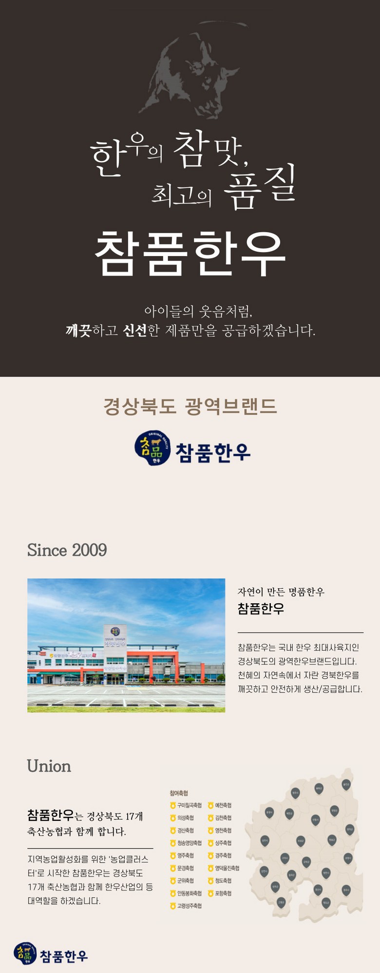 | 생산자(수입자) | 경상북도 칠곡군 가산면 경북대로 1701-3 참품한우 | 원산지 | 국내산 한우 |