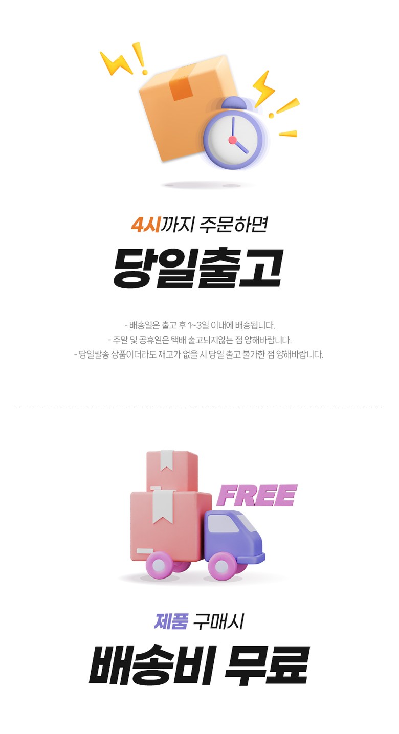 | 배송방법 | 순차배송 | 배송비 | 무료배송 - 도서산간 지역 배송불가 |