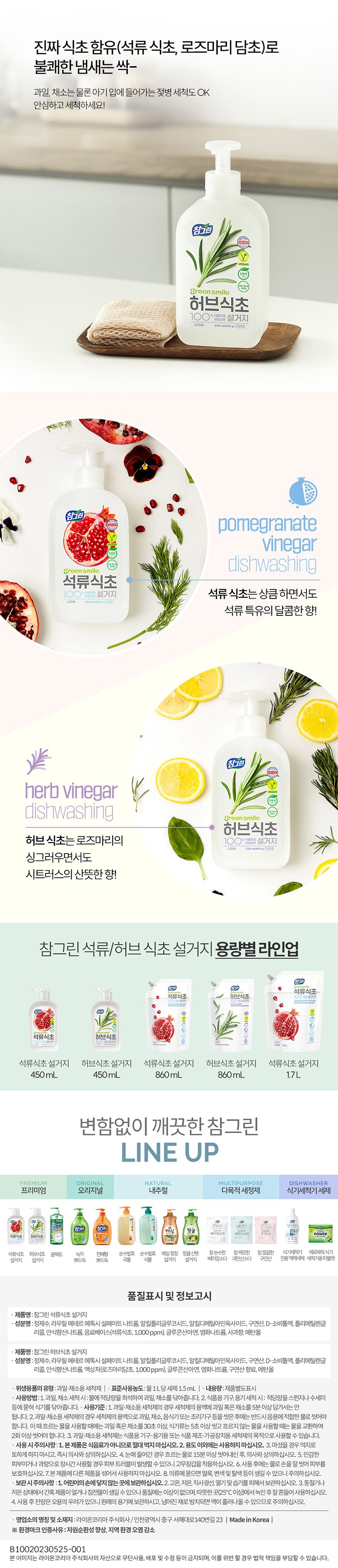 | 품명 및 모델명 | 참그린석류식초설거지1.7L(1.78kg)리필 | 인증/허가 사항 | 위생용품 |