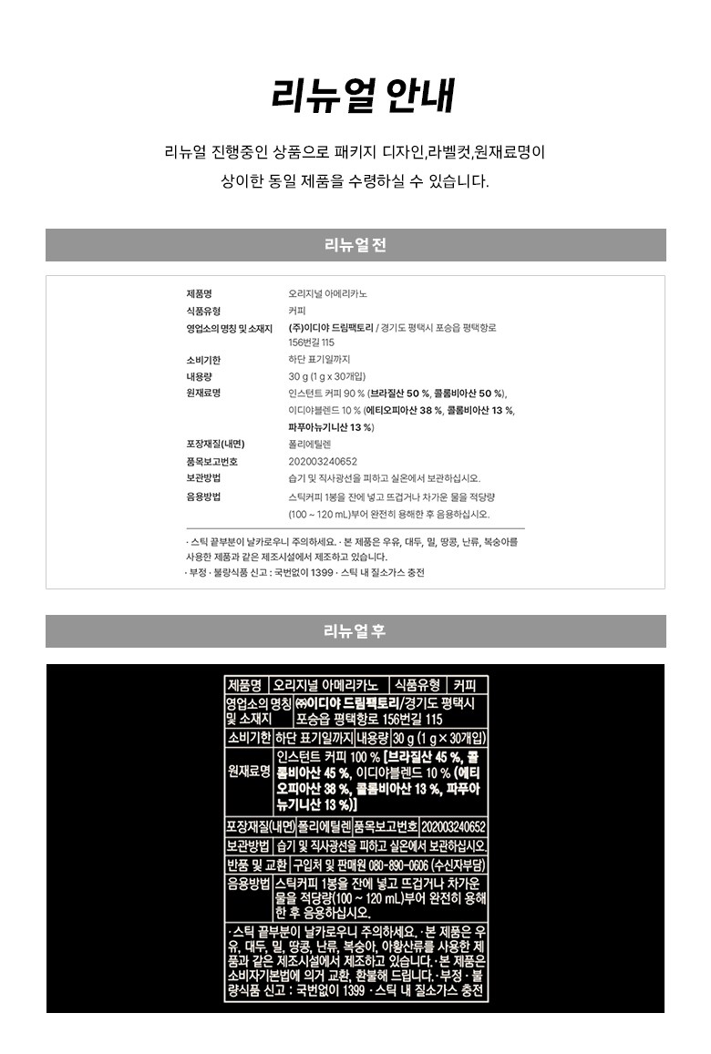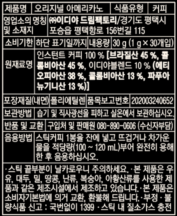 - 맛/향: 아메리카노/블랙
