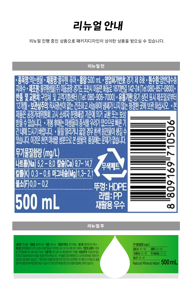 | 제품명 | 풀무원 퓨어 | 식품의 유형 | 컨텐츠 참조 |
