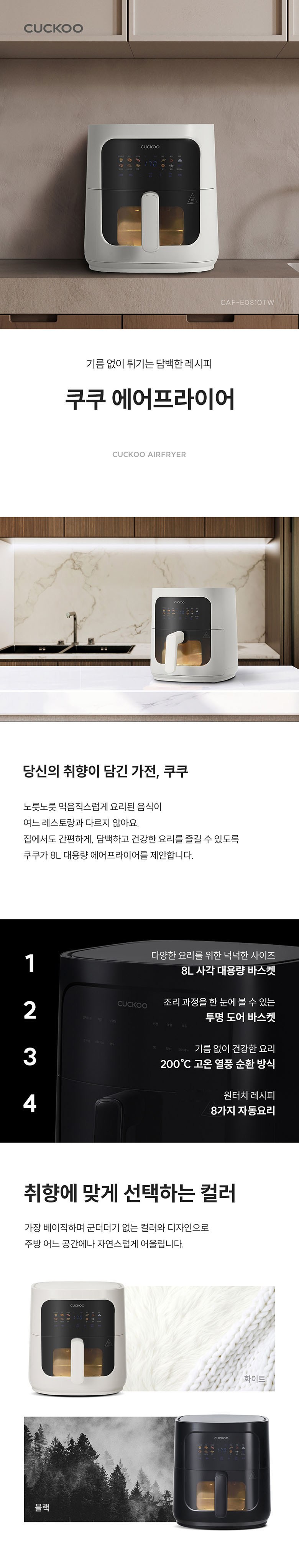 | 품명 및 모델명 | 에어프라이어 / CAF-E0810TW | KC 인증정보 | JU071736-23002 , R-R-cke-EK-80Z091 |
