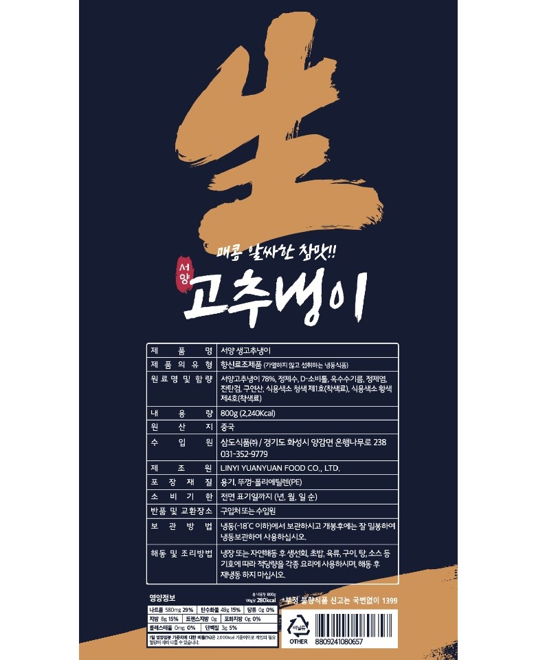 | 제품명 | 상품 상세페이지 참조 | 식품의 유형 | 상품 상세페이지 참조 |