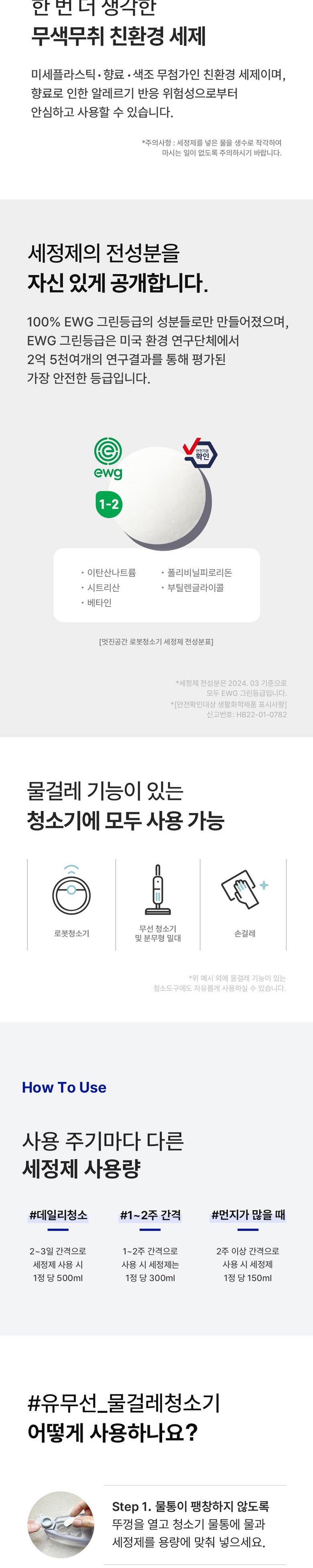| 품명 및 모델명 | 멋진공간 로봇청소기 세정제 | 인증/허가 사항 | HB22-01-0782 |
