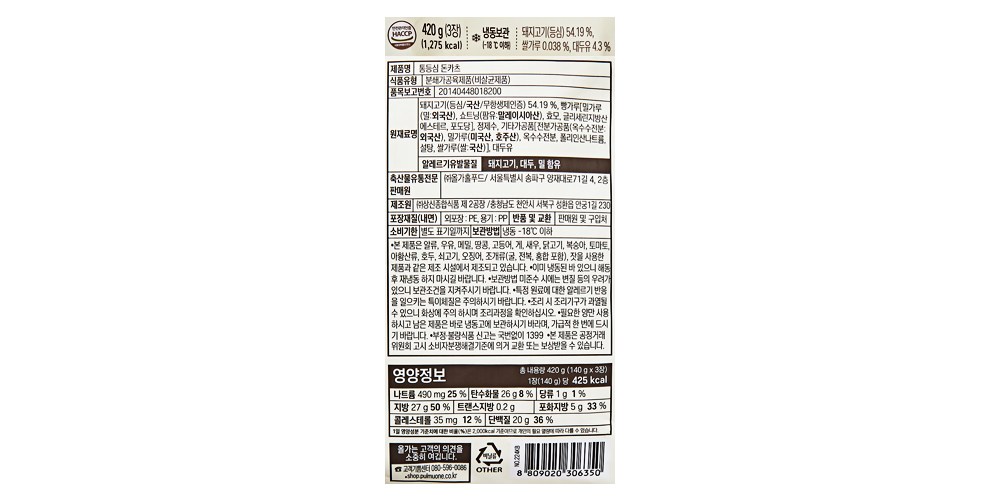 | 포장단위별 내용물의 용량(중량), 수량 | 420g x 3개 | 원재료명 및 함량 | 컨텐츠 참조 |