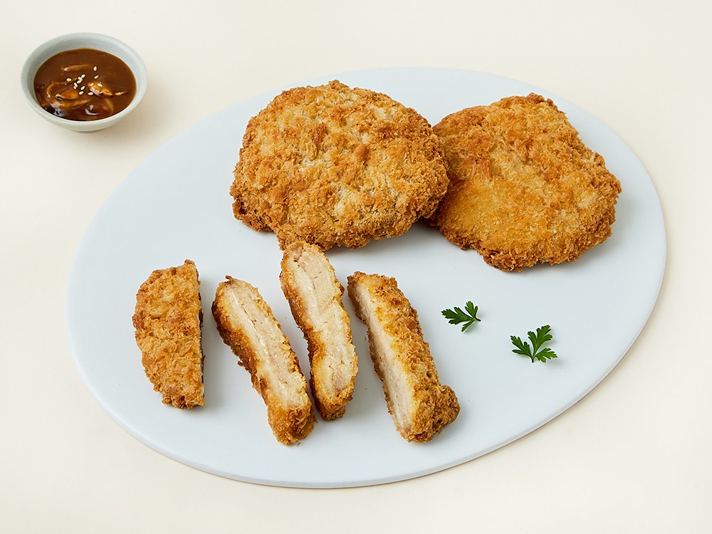 국내산 무항생제 인증 돼지고기를 사용한 통등심 돈카츠입니다. 두툼한 돼지고기 등심을 깨끗한 기름에 세 번 튀겼는데요. 촉촉한 육즙은 그대로 살리면서도, 튀김옷은 바삭바삭한 식감을 자랑한답니다. 기름기는 적고 고소한 맛은 진하게 느껴지죠. 전문점에서 먹을 법한 프리미엄 돈카츠를 에어프라이어, 전자레인지로 간편히 조리해보세요.