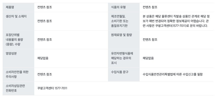 | 배송방법 | 순차배송 | 배송비 | 무료배송 - 로켓배송 상품 중 19,800원 이상 구매 시 무료배송 - 도서산간 지역 추가비용 없음 |