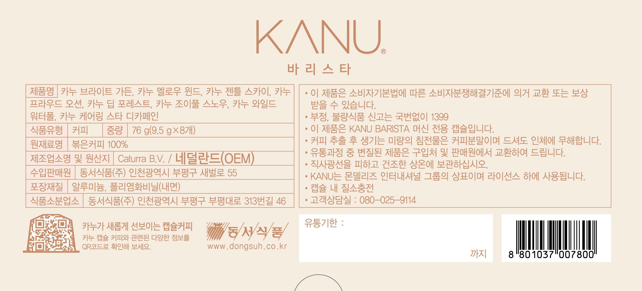 | 품명 및 모델명 | 카누 바리스타 머신 페블 블랙 / DSM-DN | KC 인증정보 | SU072856-23001, R-R-T1B-DSM |