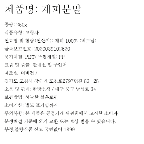 | 포장단위별 내용물의 용량(중량), 수량 | 250g x 2개 | 원재료명 및 함량 | 컨텐츠 참조 |