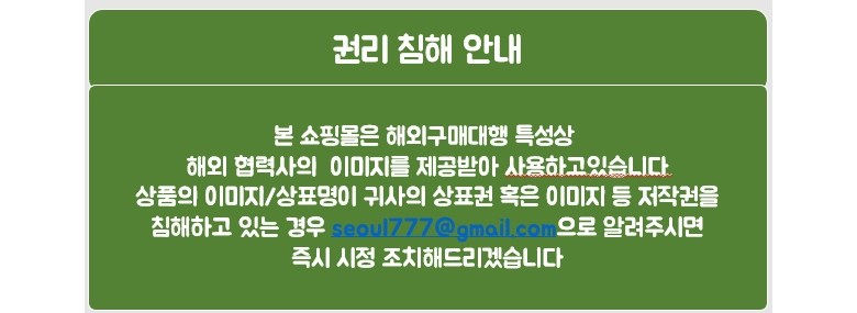 해외업체가 등록한 상품에 대해서는 법적 책임을 지지 않습니 다. 상품에 오류가 있을 경우, 상품문의에 남겨주시면 신속히 확인/처리 하도록 하겠습니다.