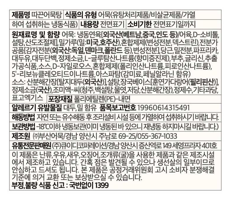 | 생산자 및 소재지 | 상품 상세페이지 참조 | 제조연월일, 소비기한 또는 품질유지기한 | 상품 상세페이지 참조 |