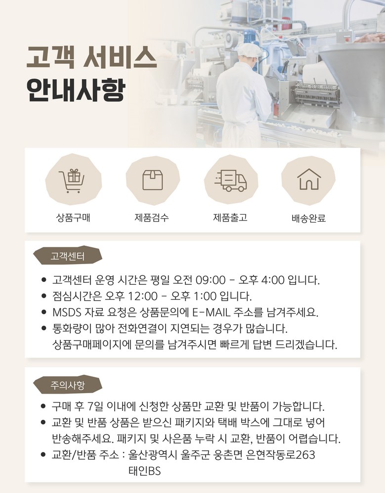 - ㆍ모니터 해상도의 차이로 인해 색상이나 이미지가 실제와 달라, 고객이 단순 변심으로 교환/반품을 무료로 요청하는 경우