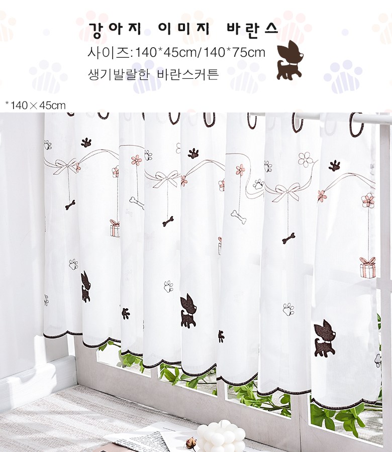| 품명 및 모델명 | 자수 강아지 고양이 이미지 귀여운 바란스커튼 2종 | 인증/허가 사항 | 상품 상세페이지 참조 |