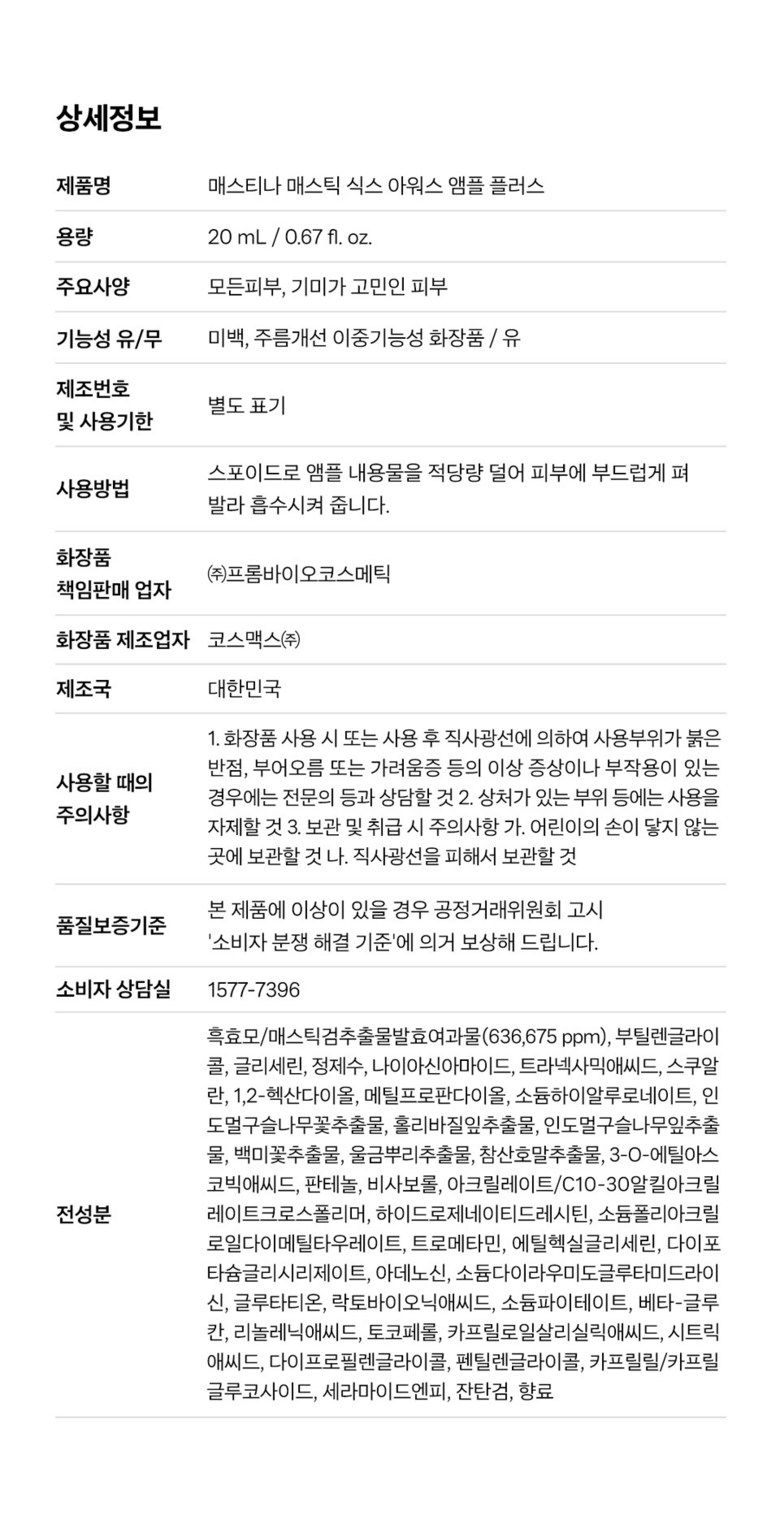 | 화장품제조업자, 화장품책임판매업자 및 맞춤형화장품판매업자 | 상품 상세페이지 참조 | 제조국 | 상품 상세페이지 참조 |